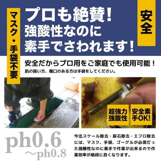 プロも唖然!非常に強い酸性でありながら 素手で触れます! それなのに効果絶大。